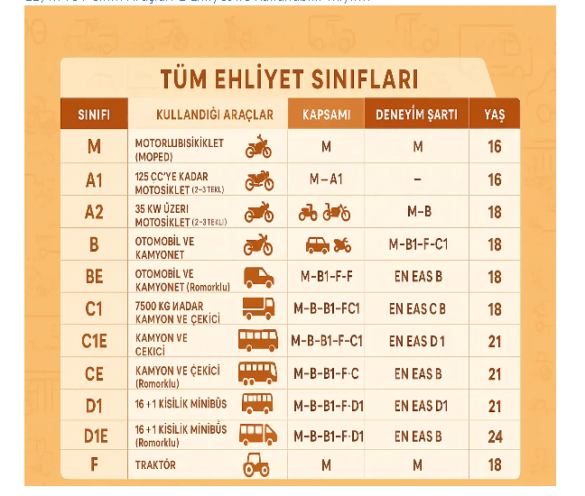 Hangi Ehliyet Sınıfları Hangi Araçları Kapsar?